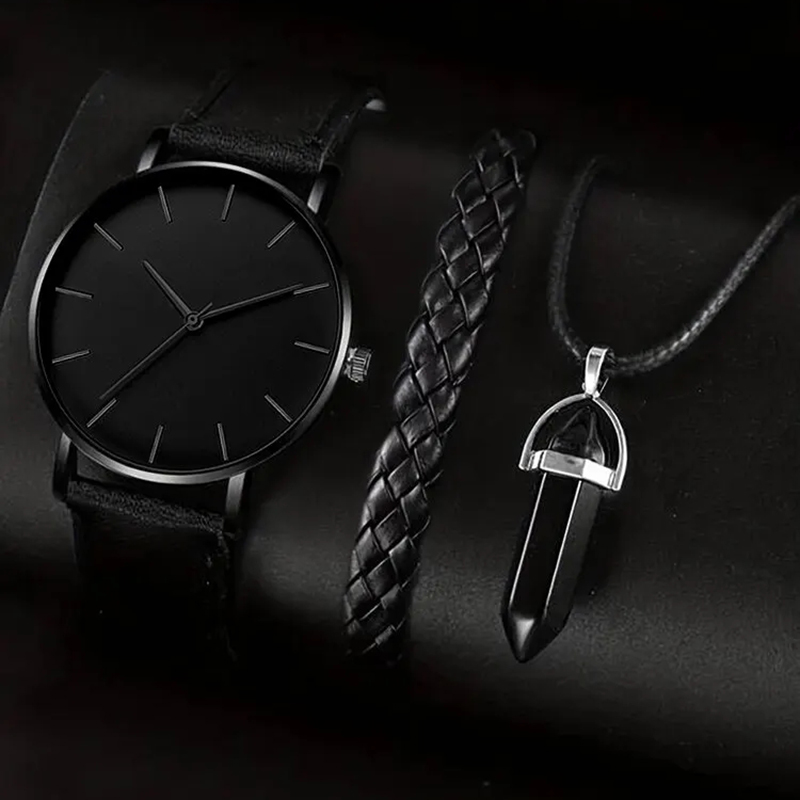 When the set arrived, I was pleasantly surprised. The packaging was minimal, but the items themselves felt substantial. The set includes a quartz watch, a PU leather belt, and a PU leather woven bracelet. Some listings mention a necklace, but mine came with the bracelet, which was exactly what I wanted.