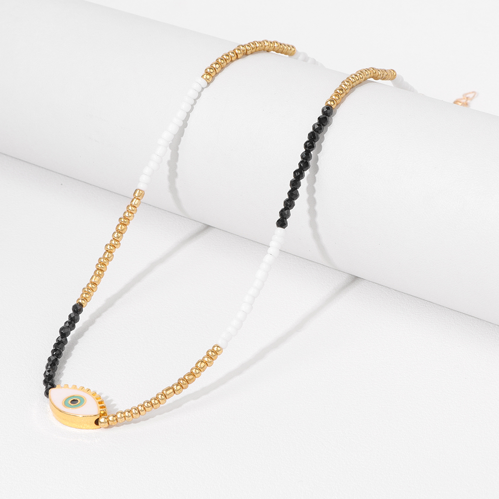 I decided to order it, and I'm so glad I did! The necklace is even more beautiful in person. The seed beads and crystals catch the light beautifully, and the freshwater pearl adds a touch of elegance. The evil eye charm is a nice touch, offering a sense of protection. It feels well-made and comfortable to wear.